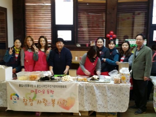 한울공동체에서 정기 봉사활동을 펼치는 김진희 회장(왼쪽부터 세번째)과 자원봉사자들.
