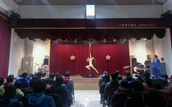 [엑스포츠뉴스 김원기 기자] 사단법인 한국폴스포츠협회(협회장 김진희)는 지난 9일 연말 송년 모임을 대신해, 충남 공주시 소재 삼휘복지재단을 방문하여 장애우들에게 뜻깊은 공연으로써 재능기부 사회봉사 활동을 가졌다.
